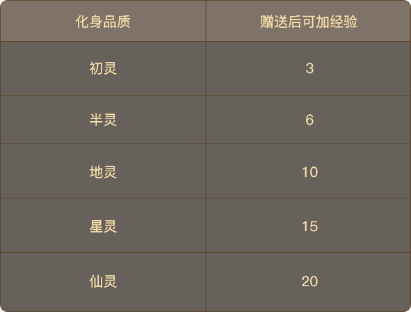 化身品质分为初灵<半灵<地灵<星灵<仙灵,不同品质享有的权益不同,权益将不间断更新: